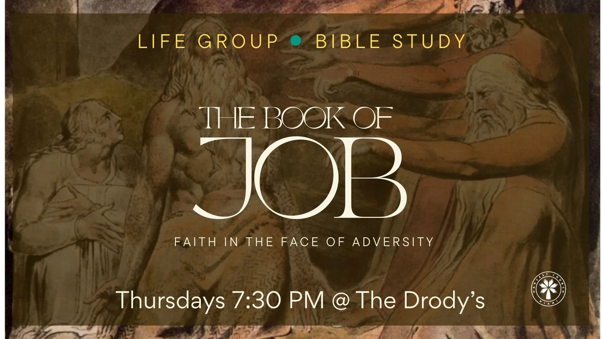 Join us Thursday evenings at 7:30 PM for an in-depth Bible study on the Book of Job, hosted at the Drody’s home. Because this study is held in a private residence, registration is required in order to receive the address.